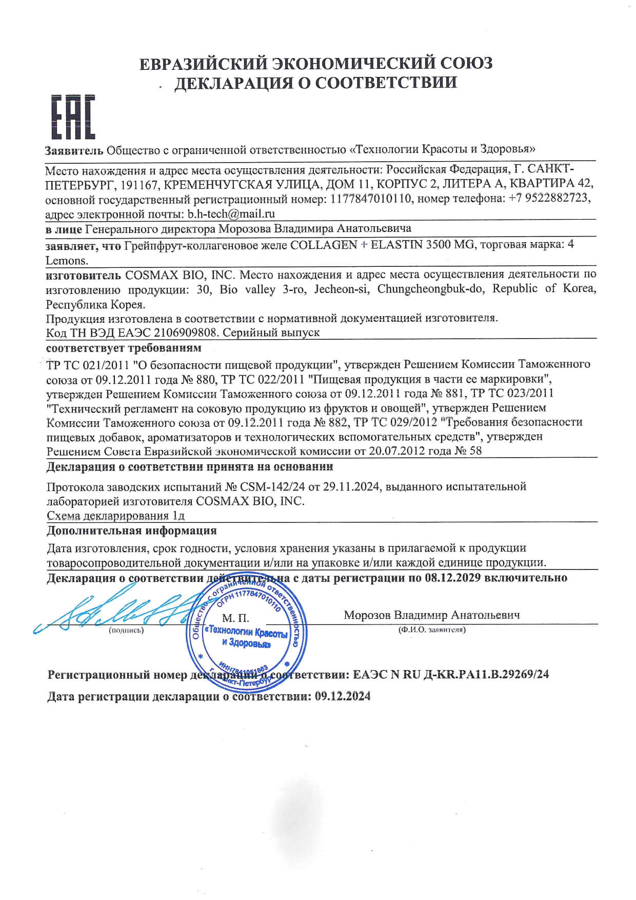 4LEMONSCollagen + Elastin 3500Морской коллаген с эластином со вкусом грейпфрута в форме желе